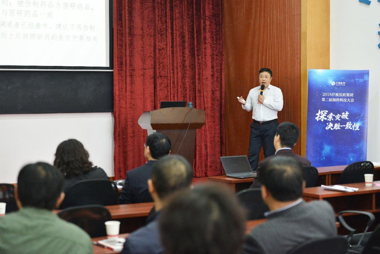 研发中心茅仁刚总经理就研发中心2018年的主要工作,做了题为《拼搏奋斗 创新突破》的主题发言,在回顾、总结2017年研发整体工作的基础上,阐述了2018年研发的主要任务与工作,研发中心的整合,硬件、软件建设及具体科研项目研究计划,并强调了一致性评价工作的重要性,必须做到优先安排,集中攻关,重点突破。